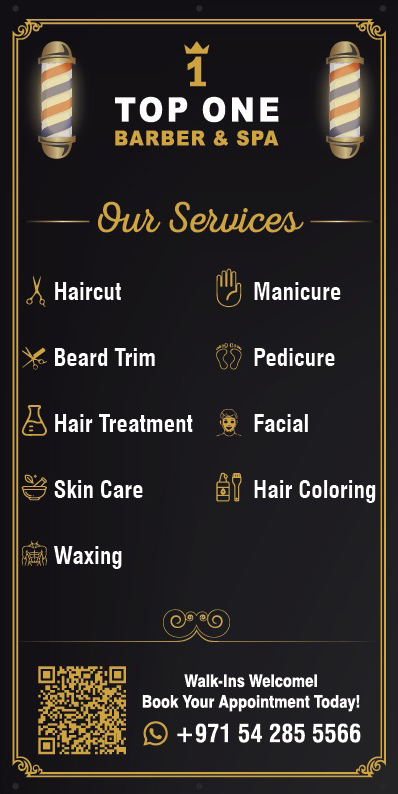 Hair Cut / Beard Shave / Manicure / Pedicure / Foot Scrub & Spa / Facial / Waxing / Body shave